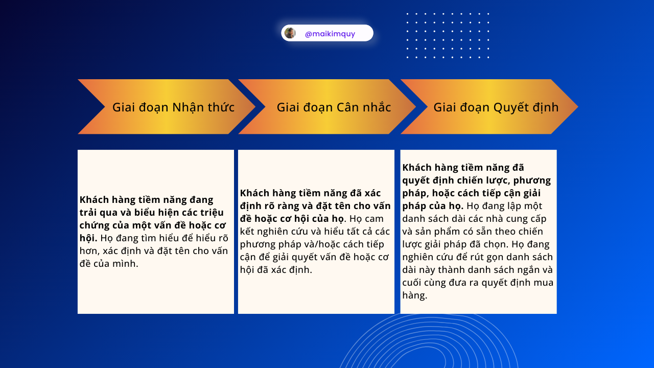 - Giai đoạn Nhận thức: Khách hàng tiềm năng nhận ra vấn đề và bắt đầu tìm hiểu.